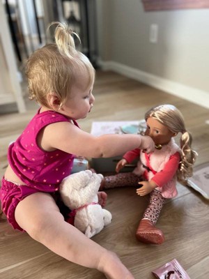 - 18-inch Doll & Pet Puppy Set: Turn every day into a paw-some adventure with Our Generation 18-inch doll Kinsley and her pet puppy Kenzi.