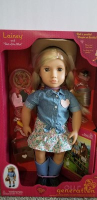 Our Generation Lainey Posable 18" Cowgirl Doll with Horse Accessories and Storybook: Plastic Fashion Doll with Hazel Eyes, Straight Hair