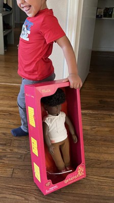 [This review was collected as part of a promotion.] My kids were excited when Malik came in the mail. His hair is super soft and we love that he represents how a lot of our friends look. However, the torso of the doll is plush and squishy, while the arms and leg are firm. This gives the doll a strange body shape and feels odd to hold him.