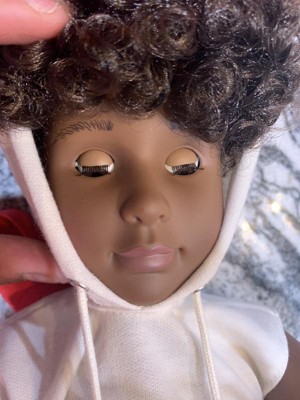 Take a bright step toward fun and adventure with Malik! This Our Generation 18-inch boy doll has a huggable soft body and lifelike features. His dark-brown eyes open and close, and his short, curly brown hair is lots of fun to style! Malik arrives wearing a cool interchangeable outfit, including a short-sleeved hooded top, a pair of joggers, and bright red shoes. When it's time for dress-up, his outfit also has easy-open closures to quickly put on and remove. So you can mix, match, and create more cool looks!