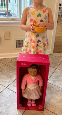 Leap into ballet dreams with Our Generation doll Mika! Kids can explore their love of dancing with an 18-inch doll best friend who shares their passion. On stage, she wears a pretty ballet outfit with beautiful butterfly details, seen on her headband, skirt, leg warmers, and "en pointe" shoes. Plus, her bright pink shrug lets kids expand the storytelling as they role-play ballet practice sessions, dance class, and costume changes. Mika has a huggable soft body and lifelike features that will delight doll fans for hours of playtime. She has expressive hazel eyes that open and close, cute freckles, and light-brown hair accented with pink highlights to create colorful styles. For kids who love dress-up, Mika's easy-change outfit inspires mixing and matching for even more fashion looks off stage! Our Generation dolls make a great gift for kids ages 3 years old and up (small parts), encouraging them to create their own unique stories.