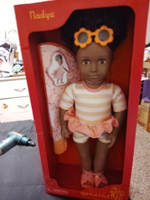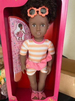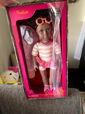- 18-inch Doll with Swimsuit: Explore beach day waves and vacay adventures with Our Generation 18-inch doll Nadya!