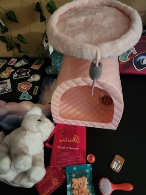 Our Generation Purrfect Retreat Pink Cat House Tree Condo with Bed, Pet Plush Kitten & Accessories for 18" Dolls: 11-Piece Play Set
