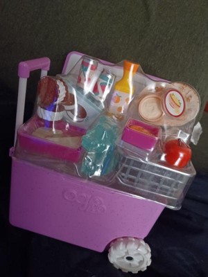 This Our Generation cooler looks like the real thing! The accessory food is perfect, and being able to actually wheel it around makes it so fun.