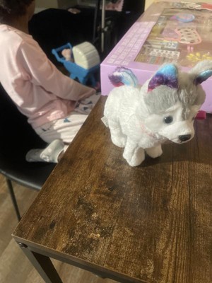 - Detailed Design: the Siberian Husky has soft, white-plush fur that's fun to cuddle, a rainbow tail and ears, and icy-blue eyes.