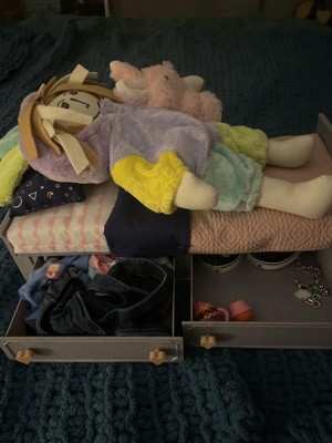 - Opening Storage Drawers: featuring cute heart-shaped handles, open up the 2 drawers to keep outfits and accessories neatly stored!