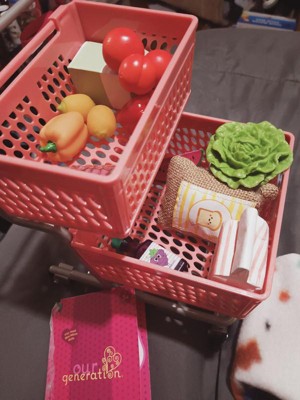 Our Generation Supermarket Play Pink Grocery Shopping Cart & Food Accessory Set for 18'' Dolls