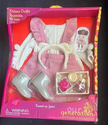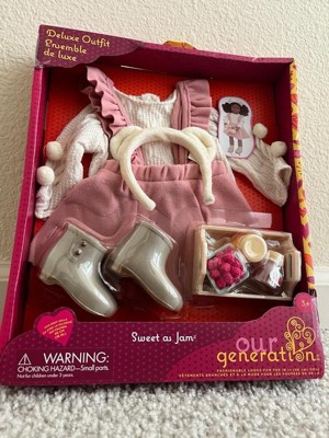 Our Generation Sweet as Jam Pink Jumper Skirt Outfit & Play Food Set for 18" Dolls: Doll Clothing Accessory Set