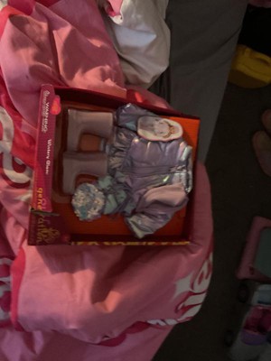 - Child-Friendly Design: Includes a zip-up metallic puffer coat with cute ruffle details, a beanie hat, a shimmery heart-shaped sequin purse, and tall boots to dress their doll from head to toe.