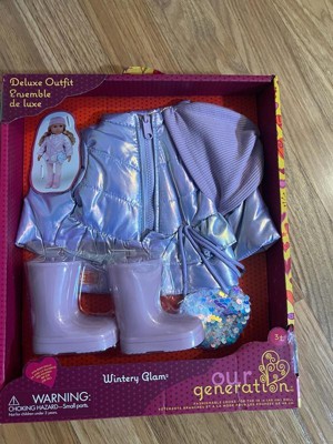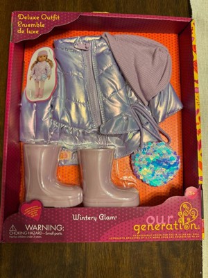 - 18-inch Doll Coat Outfit: Bundle up in brrr-illiant style with the Our Generation Wintery Glam outfit for 18-inch dolls!