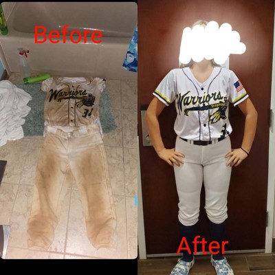 We are happy to hear that you were highly satisfied with the results of using OUT White Brite to eliminate stubborn dirt stains from white baseball uniforms. We appreciate your business and your product testimonial.