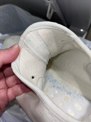 I have not had troubles before when using this product. Just used it on a pair of shoes (my son's expensive ones. yikes!) It left blue specks on it. I don't understand where it would have come from.