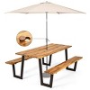 Outdoor Acacia Rectangular Picnic Table with Benches - WELLFOR