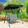 Outdoor Cushioned Loveseat Swing Glider - Green - WELLFOR: 2-Person Patio Swing Chair, Rust-Resistant Steel Frame