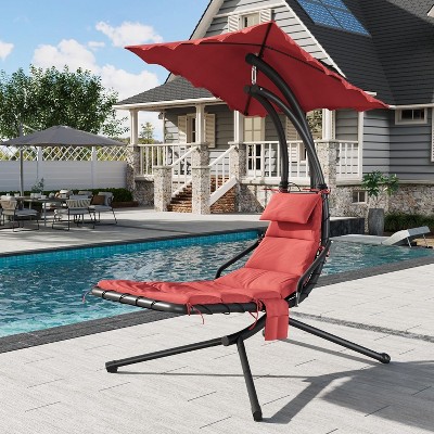 Outdoor Hanging Curved Steel Chaise Lounge Chair Curved Steel Hammock Lounger Chairs Swing with Pillow and Removable Canopy