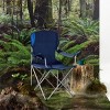A: Hi Dinky - Thank you for your interest in the Outdoor Portable Quad Chair. This Portable outdoor quad chair is supported on a metal frame, with armrests, a fabric seat and back for comfortable sitting and relaxing, featuring a built-in mesh cup holder for convenience. Happy shopping! - Emma
