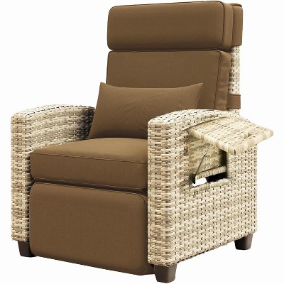 Outdoor Rattan Recliner Chair with Armrest Console Tray,1 Pcs, Patio Lounge with Adjustable Backrest & Footrest 150° Lay Flat