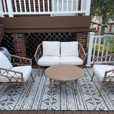 A: This rug is designed specifically for outdoor use, enhancing your outdoor seating area.