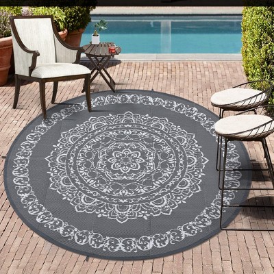 Outdoor Rug Waterproof Reversible Rug Outside Plastic Carpet, Stain & UV Resistant Portable RV Mat, 5'x8' Gray White: Geometric Pattern, All-Weather