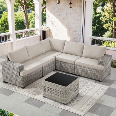 Outdoor Sectional Sofa Patio Furniture Sets with Thickened Cushions