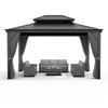 Introducing the 12x12FT Gray Aluminum Alloy Iron Plate Double Top Outdoor Shelter, the perfect solution for your garden, patio, or outdoor space. Crafted from high-quality aluminum alloy and galvanized iron plates, this canopy offers exceptional durability and weather resistance, ensuring long-lasting protection against sun, rain, and wind. Its double top design enhances ventilation and reduces heat buildup, making it an ideal shelter for any season.