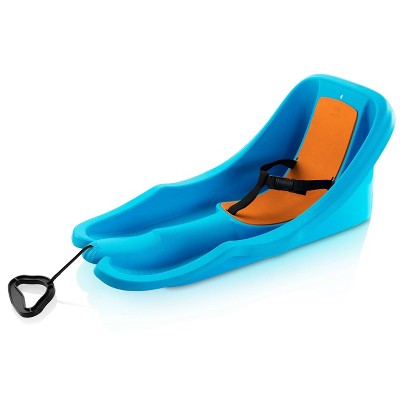 Outdoor Snow Sleigh Ice Sled Toy, Two Rider, Solid Hard Plastic with Pull Rope for Kids over 5 Years, Blue