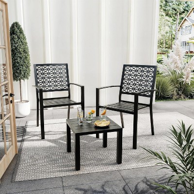 3-Piece Patio Swivel Bar Set - 2 High-Top Swivel Chairs & Glass Table, All-Weather Textile Outdoor Bar Set for Deck/Garden/Backyard