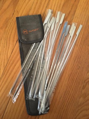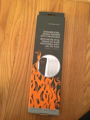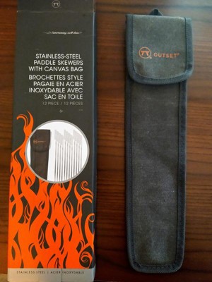 Outset Barbecue Stainless Steel Set of 4 Paddle Skewers with Black Canvas Storage Bag: Dishwasher-Safe, No Assembly Required