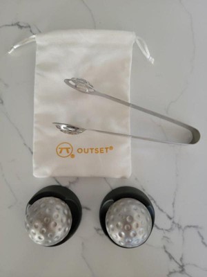 Outset Stainless Steel Golf Ball Whiskey Chillers with Storage Bag and Tongs Set of 2: Barware Accessory, Metallic Silver