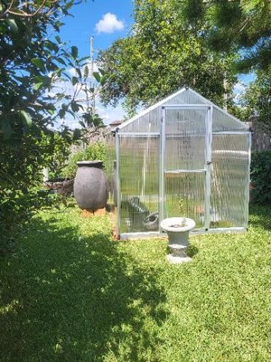 Cute little greenhouse. It's a bit low, but it works. I do wish the door was wider, it would be much easier to put in plants. It's a treat starter greenhouse. Definitely recommend doing a foundation and adding hurricane anchors.