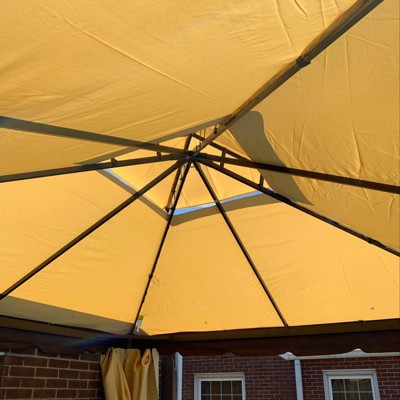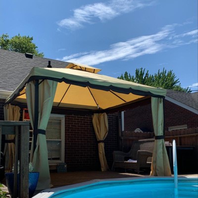 Outsunny 10' x 10' Patio Gazebo Outdoor Canopy Shelter with Double Tier Roof, Netting and Curtains for Garden, Lawn, Backyard and Deck, Beige