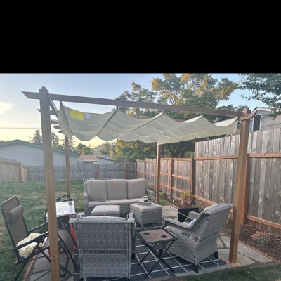 Really like the look of the pergola. We had to add a tension rod and curtain on one side to block sun while eating dinner. What was most frustrating was when my husband was putting this back up this spring, he was missing one plastic piece to keep a rod in place. Customer service would not help to replace it because I emailed one day after our one year warranty ended, and they currently can’t get one piece for customers. Absolutely frustrating, since we can’t install one rod now.