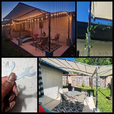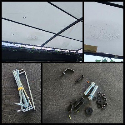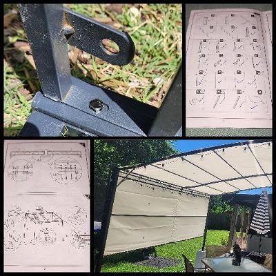 This pergola is nice and came out beautifully, but it was a headache and I wouldn't recommend especially if you're not an experienced DIYer. First off the instructions are trash; it says two hour assembly but took about 6-8 hours (I was working alone which I also dont recommend). Although the package arrived with no exterior damage, the frame had several dents and dings. Once assembled the part that anchors to your house is higher than my roofline so I had to come up with an alternative. This may work better with a two-story home. The ground stakes are the little L-shaped ones you would use for pop-up tents and would not be sufficient for such a hefty structure and wouldn't work on my concrete patio anyway. I ended up spending the equivalent of the pergola on tall planters and gravel to anchor each leg down. Finally, when it started to rain, the water is pooling around the openings but not draining through. I have to keep poking it with a broom to make the water run off. Overall I am not happy with this purchase.