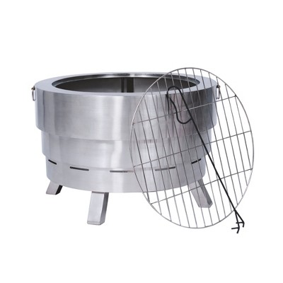Outsunny 2-in-1 Smokeless Fire Pit BBQ Grill 19" Wood Burning Firepit with Poker, Steel, Bronze