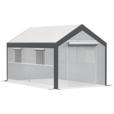 Outsunny 20' x 10' x 9' Walk-In Greenhouse, Outdoor Gardening Canopy with 6 Roll-up Windows, 2 Zippered Doors & Weather Cover, White