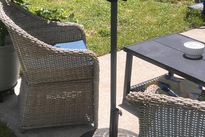 Previous umbrella base not heavy enough to withstand normal wind gusts. Since I installed this Umbrella stand base I've had zero issues with the umbrella blowing over. Not unusually to get brief 20 mph winds here, and where this umbrella is there is frequently a swirl of wind coming over the roof line. Very happy with it.