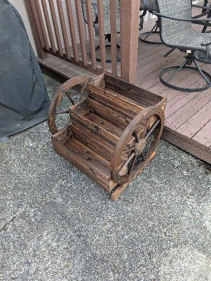 Outsunny 3 Box Raised Garden Planter, Indoor Outdoor Decorative Wagon Wheel Wooden Planter, Double Garden Bed with Drainage Holes, 25" x 24" x 23"