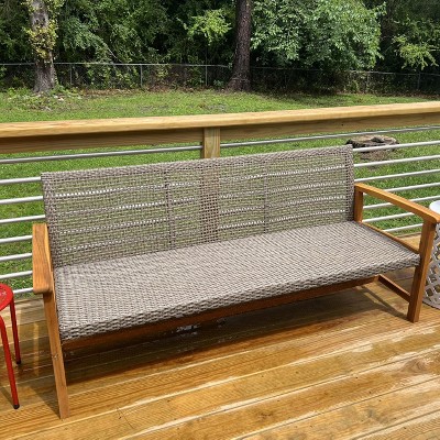 Outsunny 3-Seat Wicker Outdoor Couch Patio Sofa, 1000 lbs. Capacity, Acacia Wood Patio Furniture with Steel Seat Armrests for Backyard, Porch, Teak