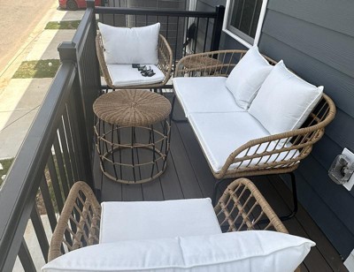 Great set, very comfortable. My only wish would have the white cushions more of a tan/cream color