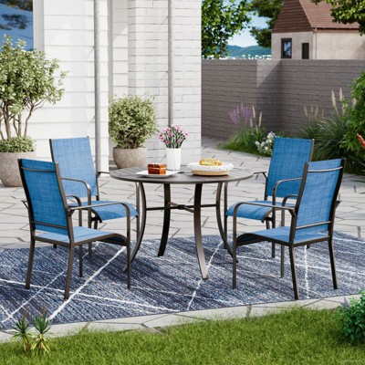 Outsunny 5pc Outdoor Table and Chairs, Aluminum Patio Dining Set for 4 w/ HDPE Materials Dinner Table with Umbrella Hole Yellow
