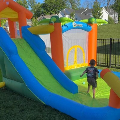 Outsunny 6-in-1 Tropical Inflatable Water Slide Jumping Castle Includes Floating Ball Slide Trampoline Pool Cannon Climbing Wall with Carry Bag