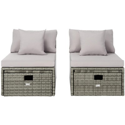 Outsunny 6 Piece Patio Furniture Set with Rattan Three-seater Sofa, Swivel Rocking Chairs, Footstools, Table, Outdoor Conversation Set, Mixed Gray