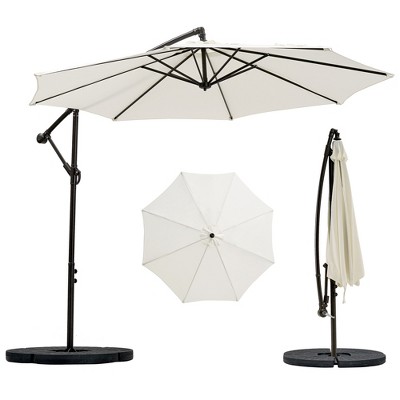 Like to read in the great outdoors? Enjoy picnics out in the summer breeze? Have a table for an umbrella but no umbrella? Say goodbye to sunburns this summer with Outsunny. This ruffled outdoor patio umbrella offers you ample shade from UV at an angle you control. Use its tilting top to get rid of glare from anywhere. It's a large patio umbrella with outdoor-ready polyester and a sturdy steel frame to provide soothing shade throughout the summer. Get out, get comfortable, get Outsunny.