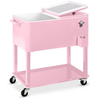 Outsunny 80 QT Rolling Cooling Bins Ice Chest on Wheels Outdoor Stand Up Drink Cooler Cart for Party, Red