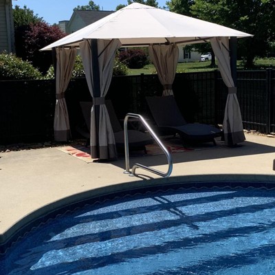 Outsunny 9.7' x 9.7' Patio Gazebo Aluminum Frame Outdoor Canopy Shelter with Sidewalls, Vented Roof for Garden, Lawn, Backyard, and Deck, Khaki