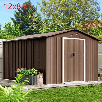 Outsunny 9' x 6' Metal Storage Shed Organizer, Garden Tool House with 4 Vents and 2 Sliding Doors for Backyard, Patio, Garage, Lawn, Brown