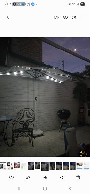 • LED Lights: Brighten your evenings with the solar-powered half umbrella. Each rib features four LED bulbs, delivering energy-efficient warm white light to create a pleasant ambiance. The battery on the top will power the bulbs and a switch is included