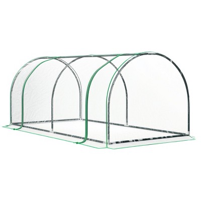 Outsunny Mini Greenhouse, 11.5' x 3' x 2.5' Portable Tunnels, 3 Roll-Up Zip Doors, UV Waterproof Plastic Cover, Steel Frame, Clear
