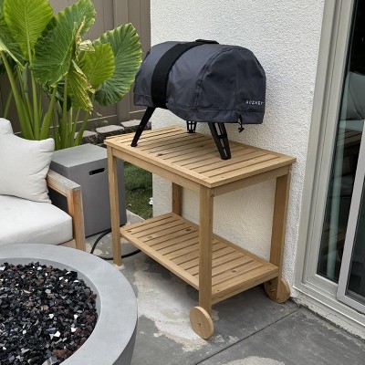 Outsunny Outdoor Bar Cart, Wood Rolling Home Bar & Serving Cart with 2 Shelves, Wine Bottle Holders for Garden, Dining Room, Natural