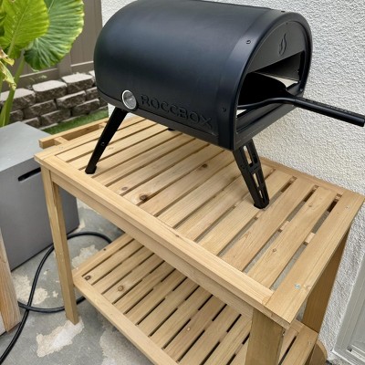 One of the holes wasn’t drilled so I had to use my drill to attach the lower shelf. I also didn’t go in order and couldn’t attach the wine rack, but that’s okay. We are using it for our Pizza Oven